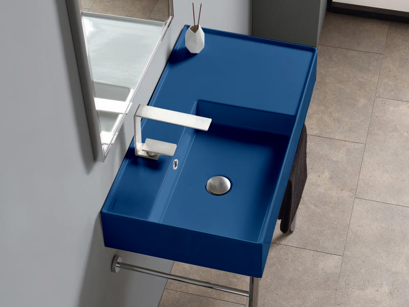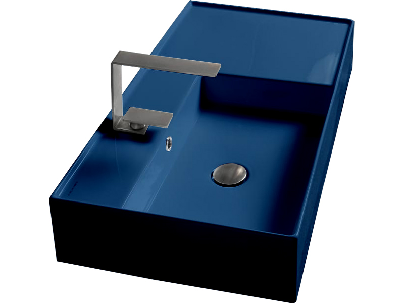 SCARABEO TEOREMA 2.0 5115 Раковина накладная или подвесная чаша слева с одним отверстием под смеситель, с сливом - переливом. Размеры: 80x44x14h см. Настенные крепления входят в комплект. Цвет Ocean.