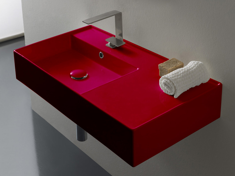 SCARABEO TEOREMA 2.0 5115 Раковина накладная или подвесная чаша слева с одним отверстием под смеситель, с сливом - переливом. Настенные крепления и перелив входят в комплект. Цвет .Размеры: 80x44x14h см. Цвет Cherry.