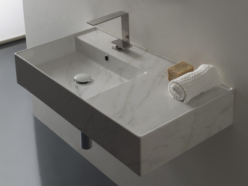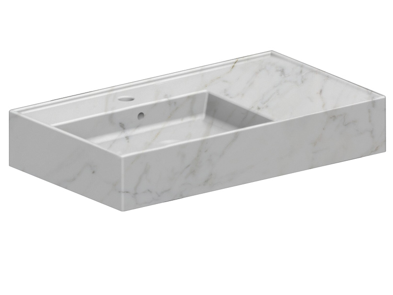 SCARABEO TEOREMA 2.0 5115 Раковина накладная или подвесная чаша слева с одним отверстием под смеситель, с сливом - переливом. Настенные крепления и перелив входят в комплект. Цвет .Размеры: 80x44x14h см. Цвет Marble White.