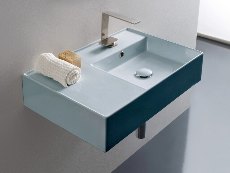 SCARABEO TEOREMA 2.0 5117 Раковина накладная или подвесная чаша справа, одно отверстие под смеситель, с сливом - переливом. Размеры: 60x44x14h см. Настенные крепления и перелив входят в комплект. Цвет Glossy Air.
