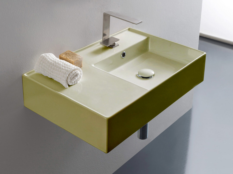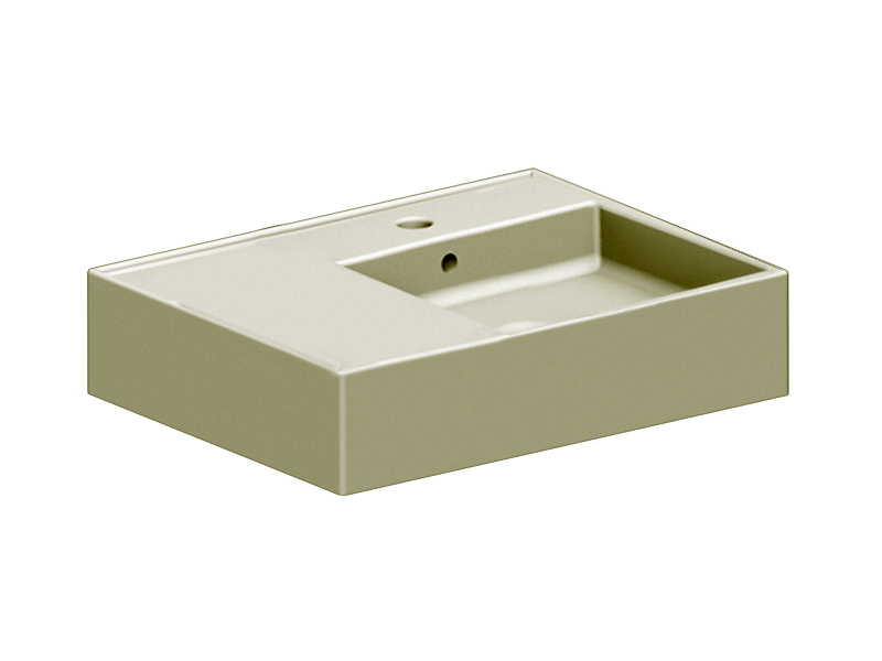 SCARABEO TEOREMA 2.0 5117 Раковина накладная или подвесная чаша справа, одно отверстие под смеситель, с сливом - переливом. Размеры: 60x44x14h см. Настенные крепления и перелив входят в комплект. Цвет Glossy lime.