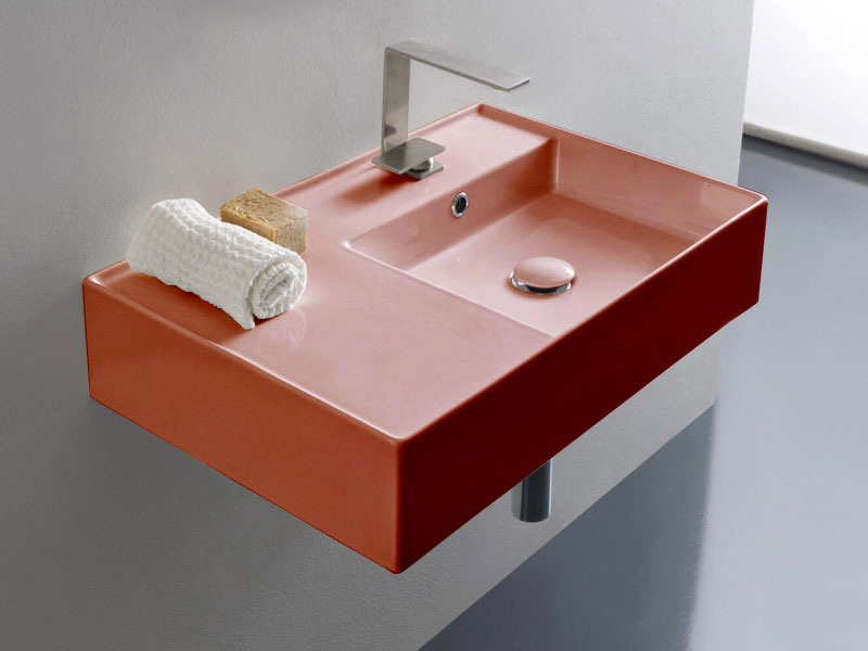 SCARABEO TEOREMA 2.0 5117 Раковина накладная или подвесная чаша справа, одно отверстие под смеситель, с сливом - переливом. Размеры: 60x44x14h см. Настенные крепления и перелив входят в комплект. Цвет Glossy Peach..