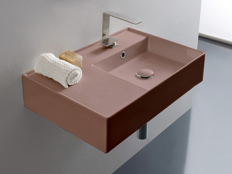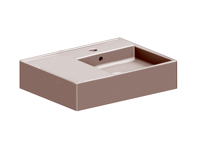 SCARABEO TEOREMA 2.0 5117 Раковина накладная или подвесная чаша справа, одно отверстие под смеситель, с сливом - переливом. Размеры: 60x44x14h см. Настенные крепления и перелив входят в комплект. Цвет Glossy Antique pink.