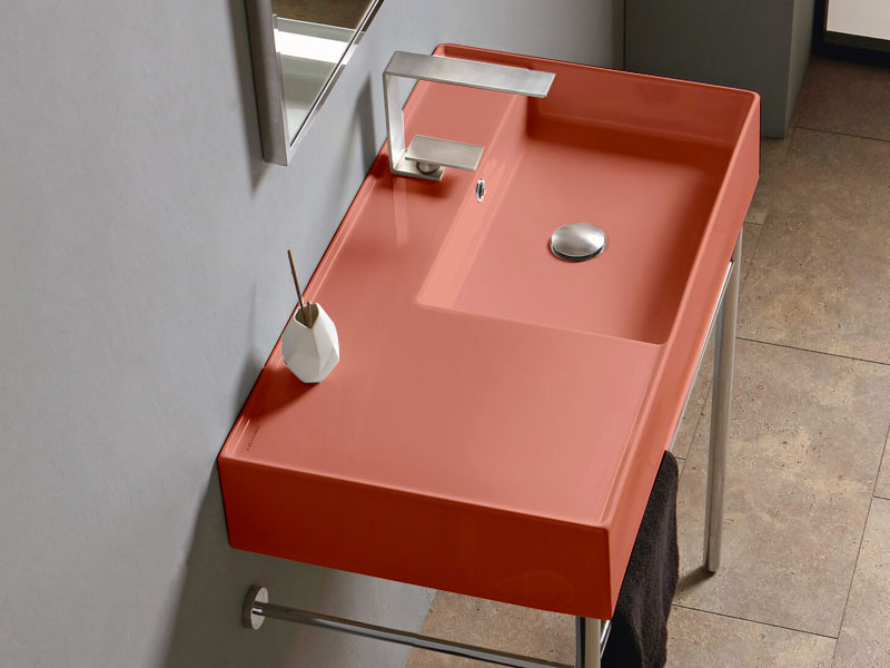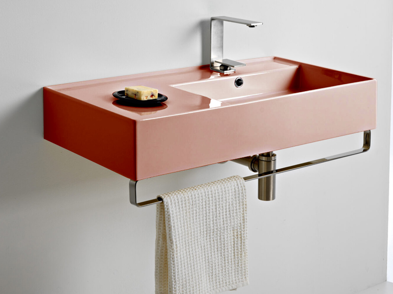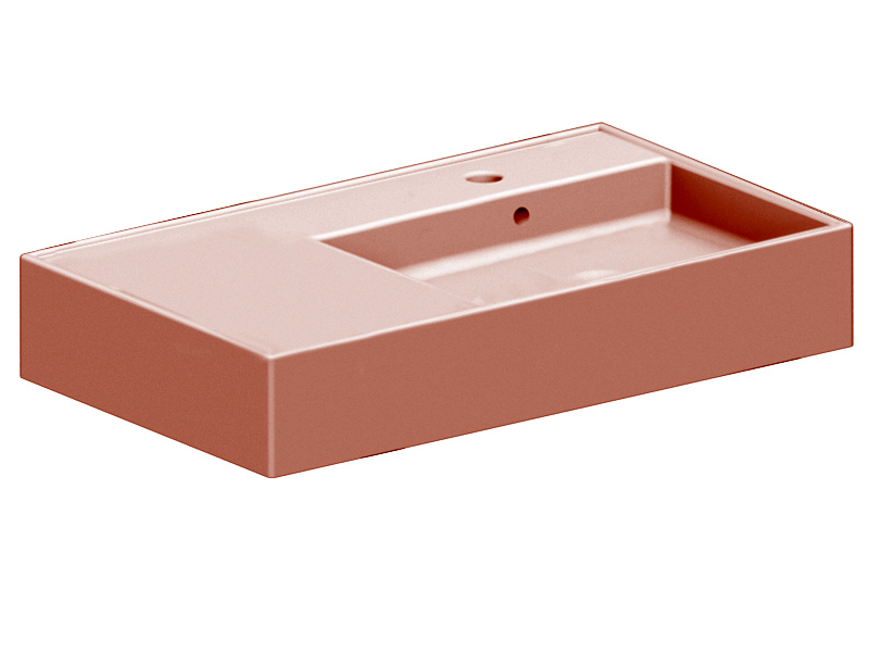 SCARABEO TEOREMA 2.0 5118 Раковина накладная или подвесная, чаша справа, одно отверстие под смеситель, с сливом - переливом. Размеры: 80x44x14h см. Настенные крепления входят в комплект. Цвет Glossy Peach.