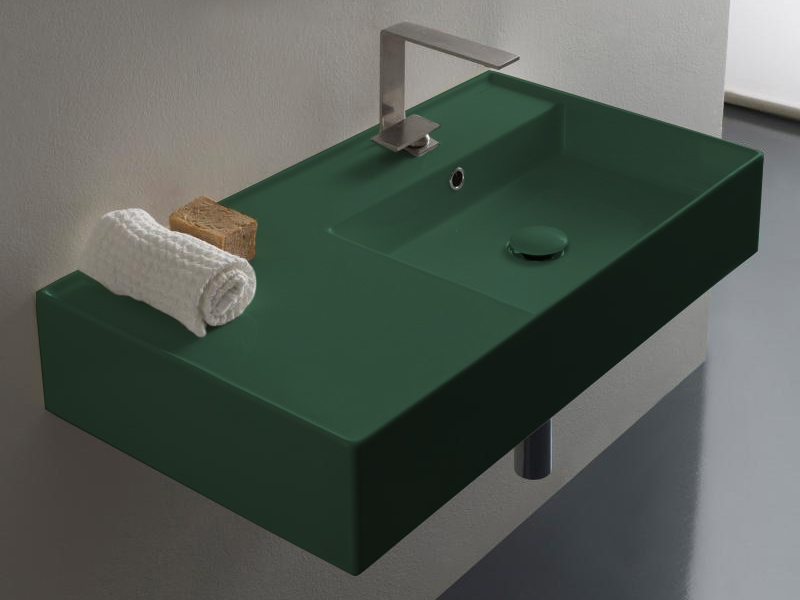 SCARABEO TEOREMA 2.0 5118 Раковина накладная или подвесная чаша справа, одно отверстие под смеситель, с сливом - переливом. Размеры: 80x44x14h см. Настенные крепления входят в комплект. Цвет Musk.