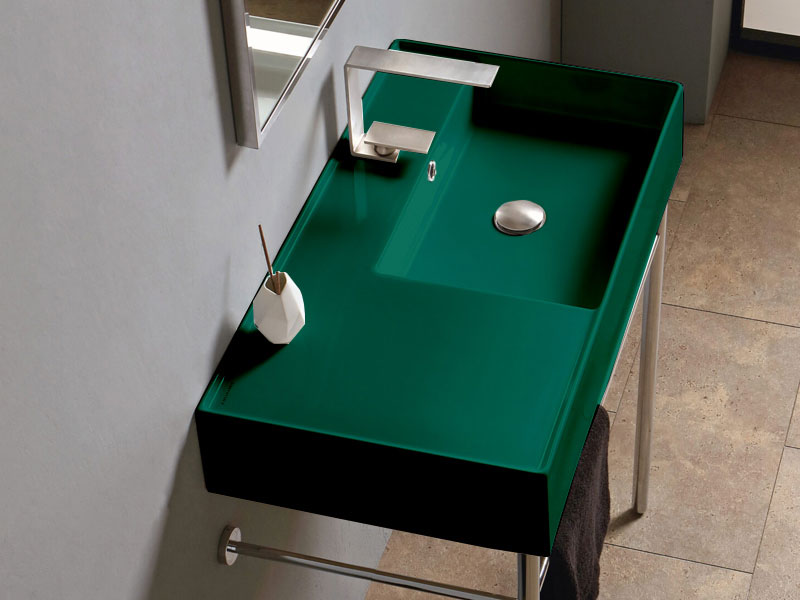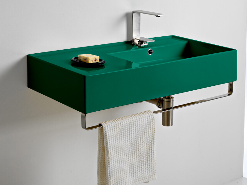 SCARABEO TEOREMA 2.0 5118 Раковина накладная или подвесная, чаша справа, одно отверстие под смеситель, с сливом - переливом. Размеры: 80x44x14h см. Настенные крепления входят в комплект. Цвет Glossy musk.