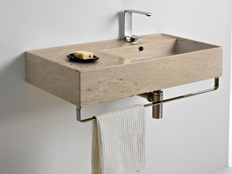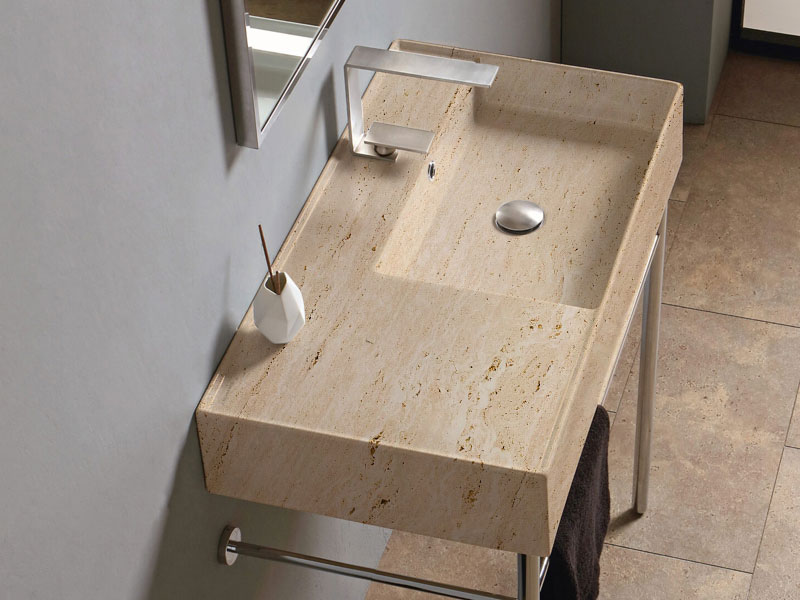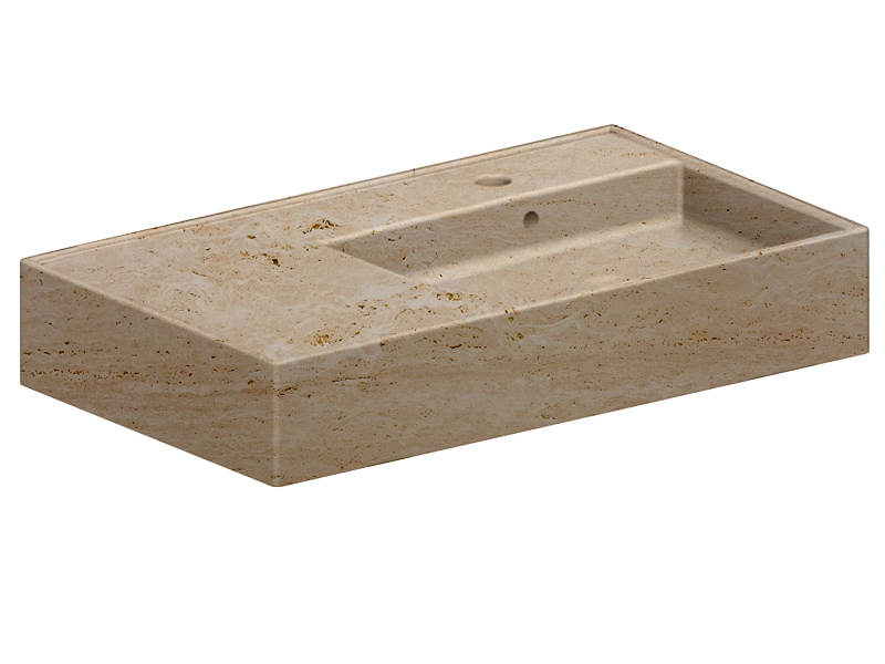 SCARABEO TEOREMA 2.0 5118 Раковина накладная или подвесная, чаша справа, одно отверстие под смеситель, с сливом - переливом. Размеры: 80x44x14h см. Настенные крепления входят в комплект. Цвет Travertine.