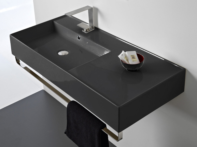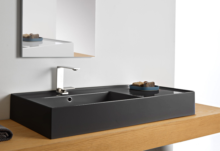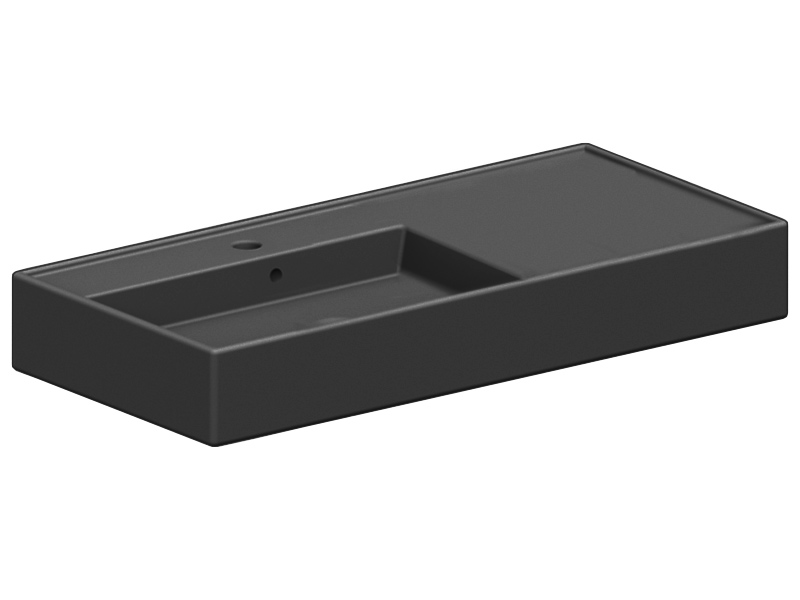 SCARABEO TEOREMA 2.0 5119 Раковина накладная или подвесная чаша слева, одно отверстие под смеситель, с сливом - переливом. Размеры: 101x46x14h см. Настенные крепления и перелив входят в комплект. Цвет Night.