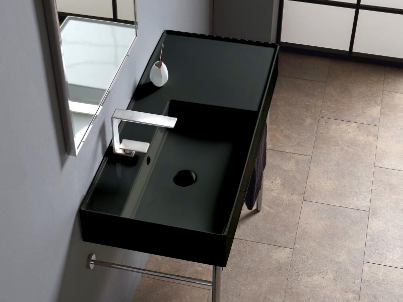SCARABEO TEOREMA 2.0 5119 Раковина накладная или подвесная чаша слева, одно отверстие под смеситель, с сливом - переливом. Размеры: 101x46x14h см. Настенные крепления входят в комплект. Цвет Ardesia.