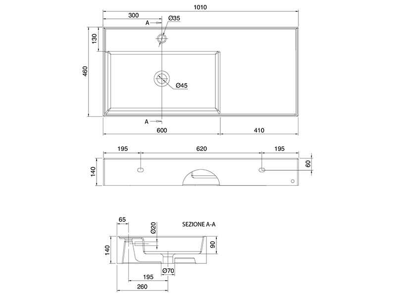 SCARABEO TEOREMA 2.0 5119 Раковина накладная или подвесная чаша слева, одно отверстие под смеситель, с сливом - переливом. Размеры: 101x46x14h см. Настенные крепления входят в комплект. Цвет Tobacco.