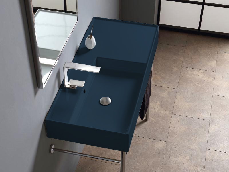 SCARABEO TEOREMA 2.0 5119 Раковина накладная или подвесная чаша слева, одно отверстие под смеситель, с сливом - переливом. Размеры: 101x46x14h см. Настенные крепления входят в комплект. Цвет Ocean.