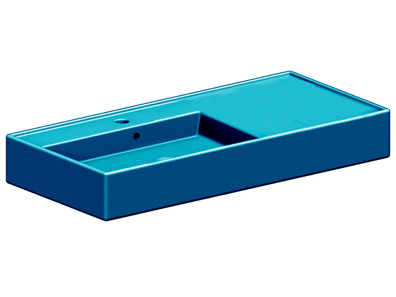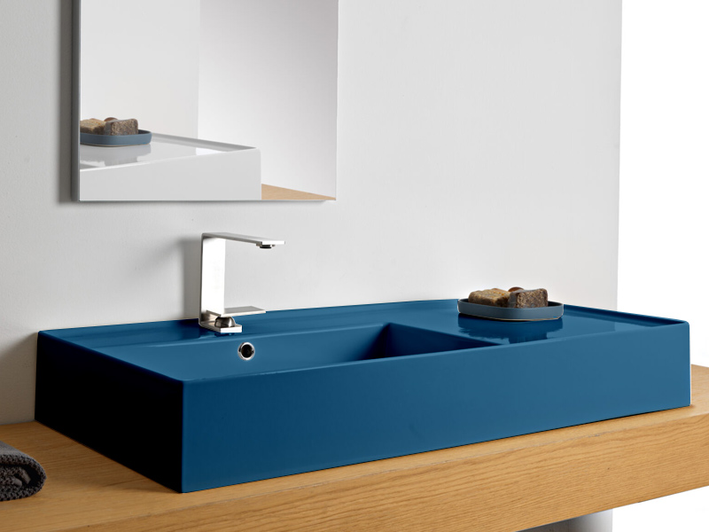 SCARABEO TEOREMA 2.0 5119 Раковина накладная или подвесная чаша слева, одно отверстие под смеситель, с сливом - переливом. Размеры: 101x46x14h см. Настенные крепления и перелив входят в комплект. Цвет Glossy ocean.