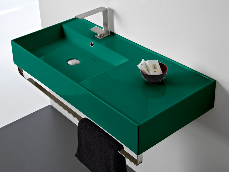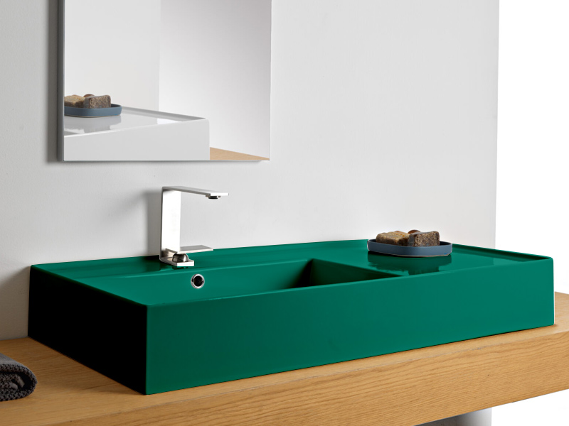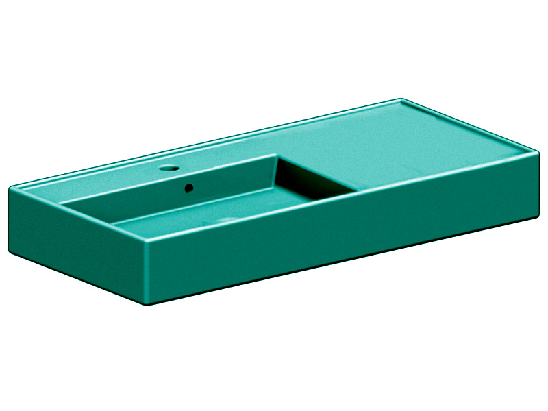 SCARABEO TEOREMA 2.0 5119 Раковина накладная или подвесная чаша слева, одно отверстие под смеситель, с сливом - переливом. Размеры: 101x46x14h см. Настенные крепления и перелив входят в комплект. Цвет Glossy Musk.