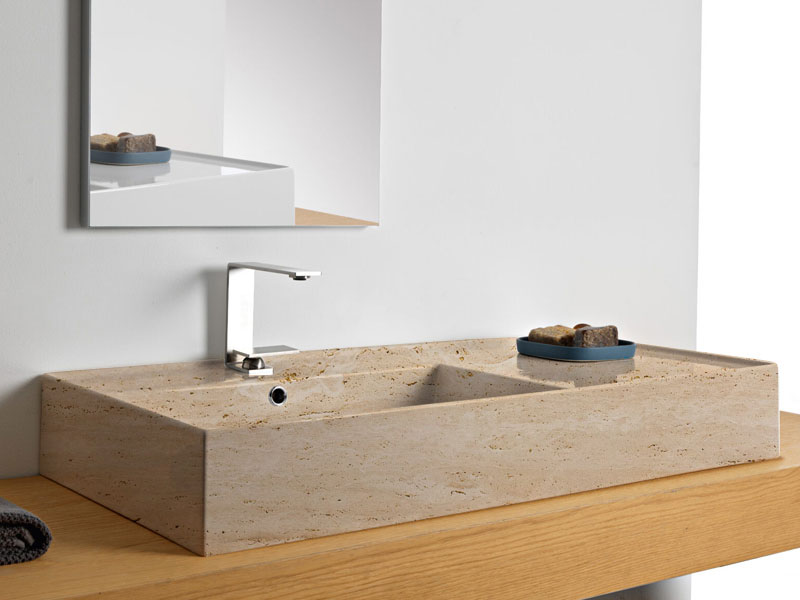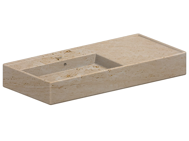 SCARABEO TEOREMA 2.0 5119 Раковина накладная или подвесная чаша слева, одно отверстие под смеситель, с сливом - переливом. Размеры: 101x46x14h см. Настенные крепления и перелив входят в комплект. Цвет .