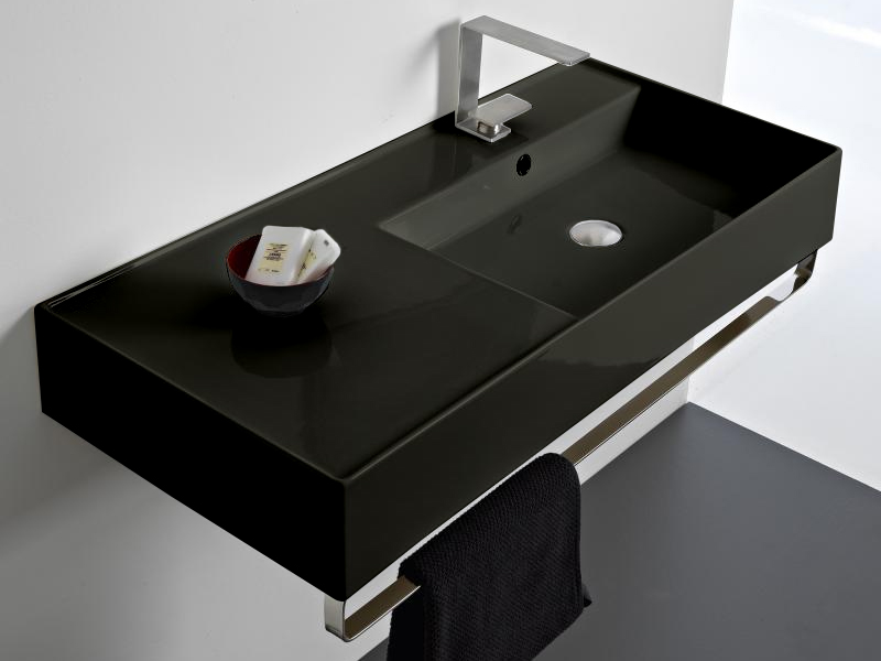 SCARABEO TEOREMA 2.0 5120 Раковина накладная или подвесная чаша справа, одно отверстие под смеситель, с сливом - переливом. Размеры: 101x46x14h см. Настенные крепления входят в комплект. Цвет Ardesia.