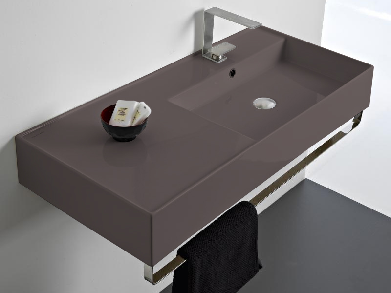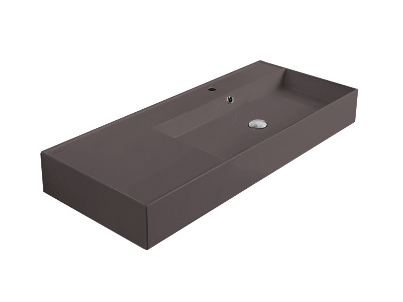 SCARABEO TEOREMA 2.0 5120 Раковина накладная или подвесная чаша справа, одно отверстие под смеситель, с сливом - переливом. Размеры: 101x46x14h см. Настенные крепления входят в комплект. Цвет Tobacco.