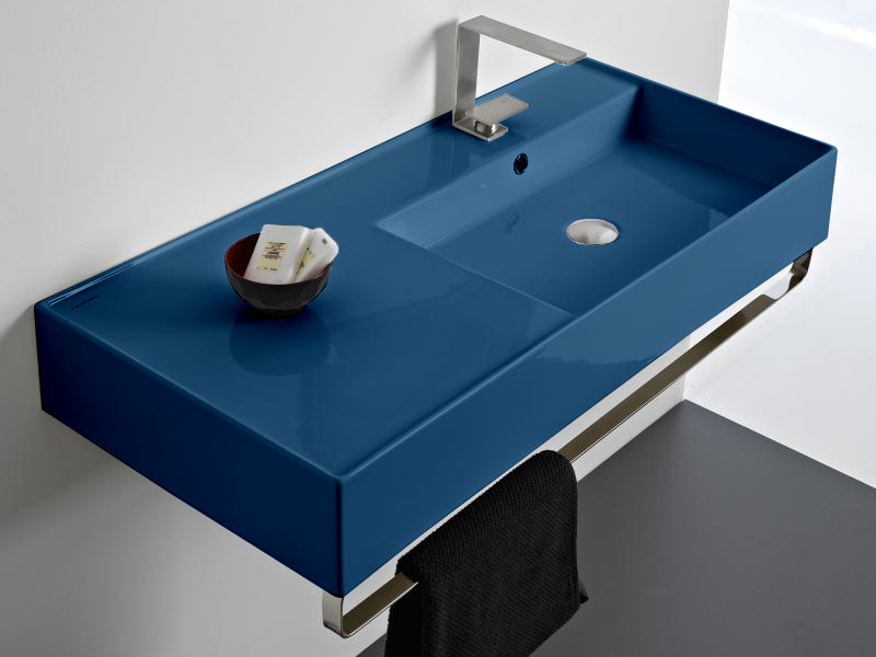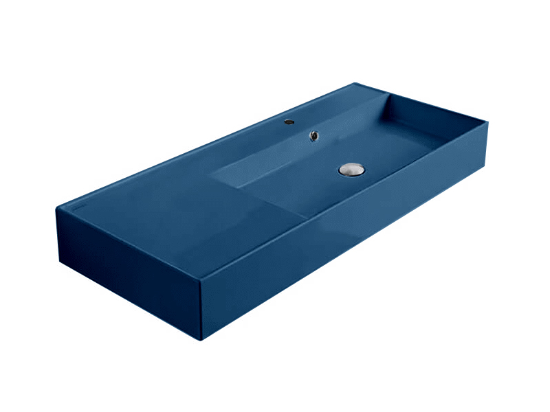 SCARABEO TEOREMA 2.0 5120 Раковина накладная или подвесная чаша справа, одно отверстие под смеситель, с сливом - переливом. Размеры: 101x46x14h см. Настенные крепления входят в комплект. Цвет Ocean.