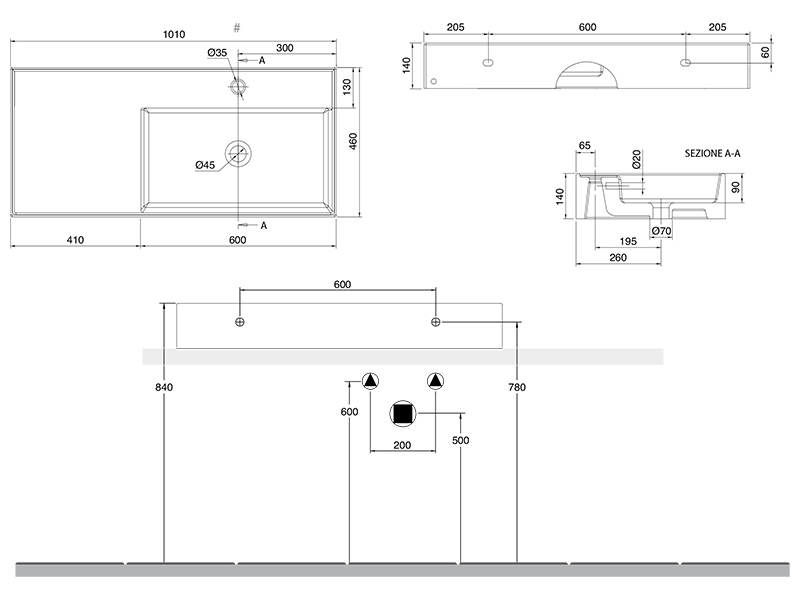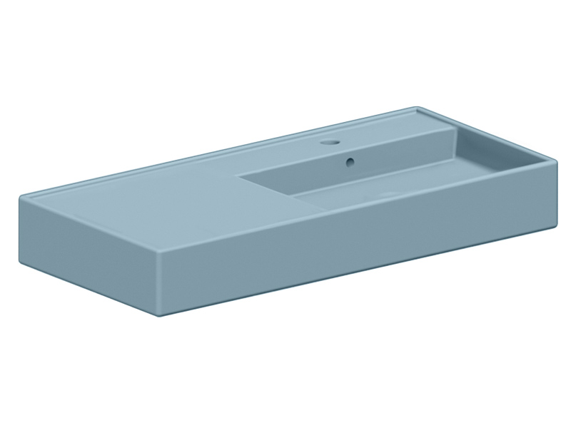 SCARABEO TEOREMA 2.0 5120 Раковина накладная или подвесная чаша справа, одно отверстие под смеситель, с сливом - переливом. Размеры: 101x46x14h см. Настенные крепления и перелив входят в комплект. Цвет Matt Air.