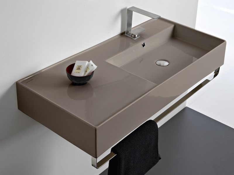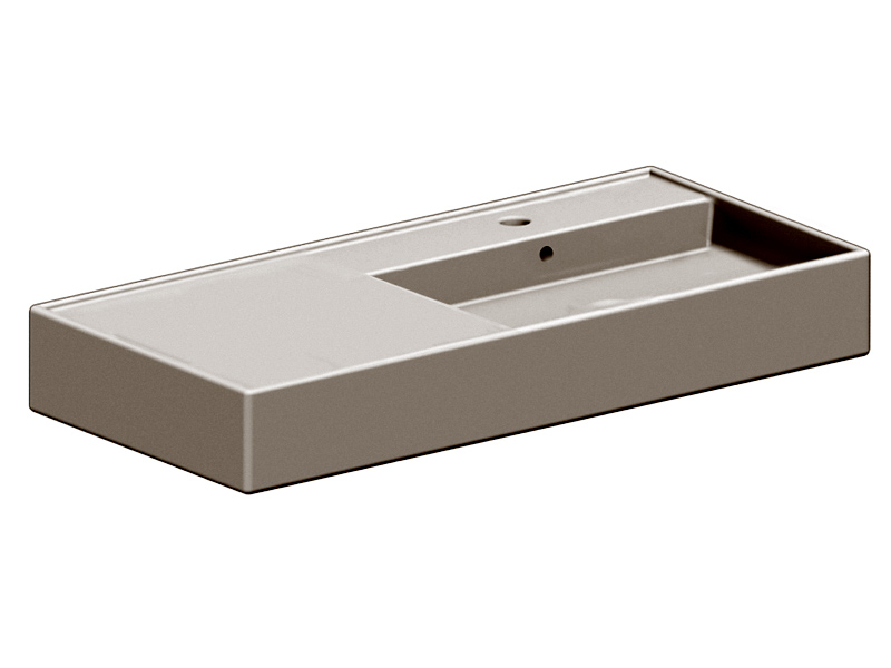 SCARABEO TEOREMA 2.0 5120 Раковина накладная или подвесная чаша справа, одно отверстие под смеситель, с сливом - переливом. Размеры: 101x46x14h см. Настенные крепления и перелив входят в комплект. Цвет Glossy sand.