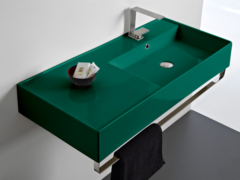 SCARABEO TEOREMA 2.0 5120 Раковина накладная или подвесная чаша справа, одно отверстие под смеситель, с сливом - переливом. Размеры: 101x46x14h см. Настенные крепления и перелив входят в комплект. Цвет Glossy musk.