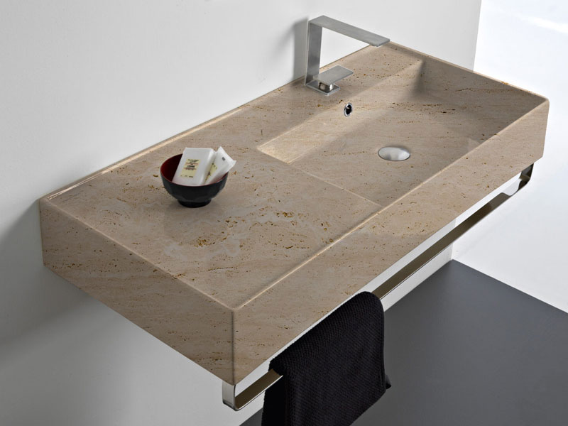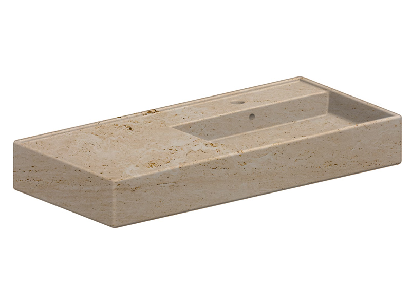 SCARABEO TEOREMA 2.0 5120 Раковина накладная или подвесная чаша справа, одно отверстие под смеситель, с сливом - переливом. Размеры: 101x46x14h см. Настенные крепления и перелив входят в комплект. Цвет Travertine.