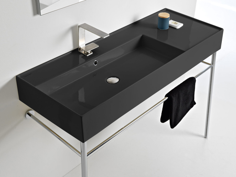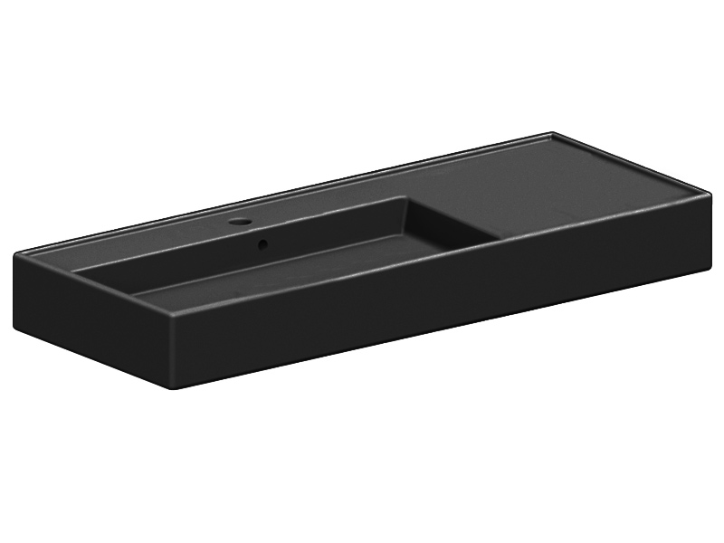 SCARABEO TEOREMA 2.0 5121 Раковина накладная или подвесная чаша слева, одно отверстие под смеситель, с сливом - переливом. Размеры: 121x46x14h см. Настенные крепления и перелив входят в комплект. Цвет Night.