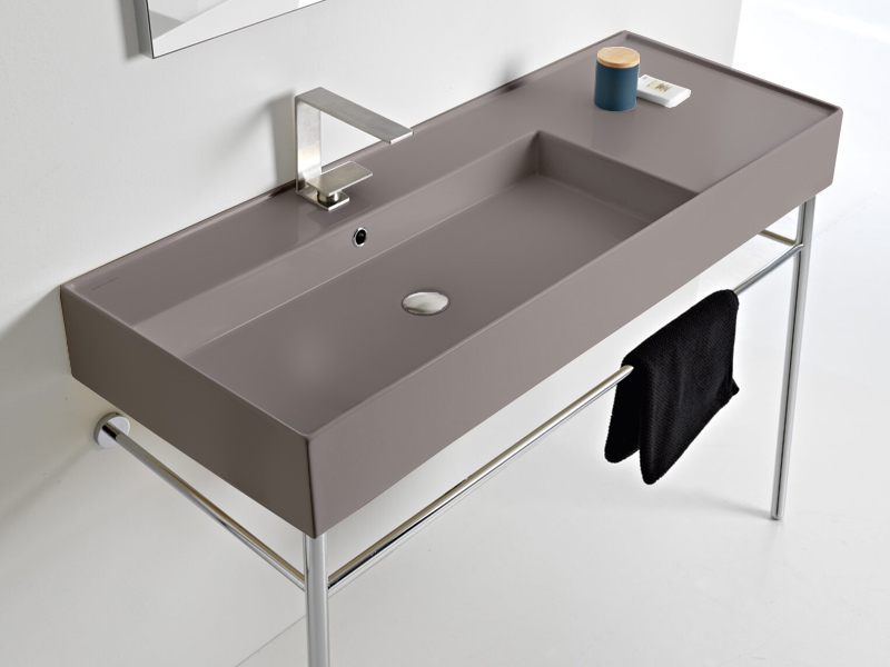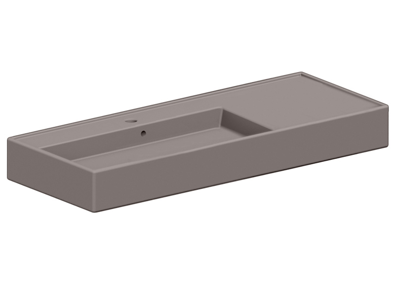 SCARABEO TEOREMA 2.0 5121 Раковина накладная или подвесная чаша слева, одно отверстие под смеситель, с сливом - переливом. Размеры: 121x46x14h см. Настенные крепления и перелив входят в комплект. Цвет sand.