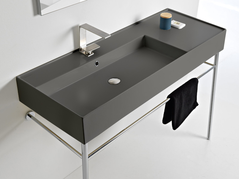 SCARABEO TEOREMA 2.0 5121 Раковина накладная или подвесная чаша слева, одно отверстие под смеситель, с сливом - переливом. Размеры: 121x46x14h см. Настенные крепления и перелив входят в комплект. Цвет Tobacco.