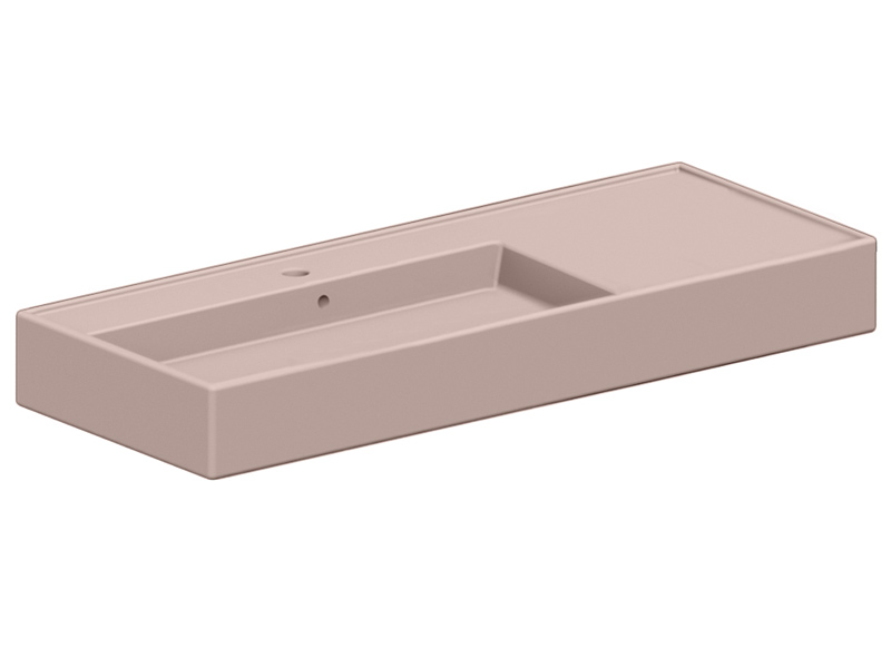 SCARABEO TEOREMA 2.0 5121 Раковина накладная или подвесная чаша слева, одно отверстие под смеситель, с сливом - переливом. Размеры: 121x46x14h см. Настенные крепления и перелив входят в комплект. Цвет Antique pink.