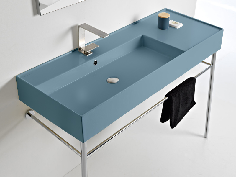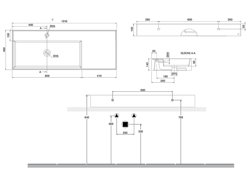 SCARABEO TEOREMA 2.0 5121 Раковина накладная или подвесная чаша слева, одно отверстие под смеситель, с сливом - переливом. Размеры: 121x46x14h см. Настенные крепления и перелив входят в комплект. Цвет Matt Air.