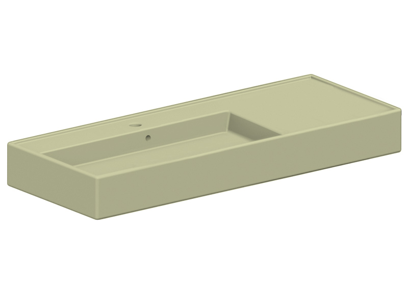 SCARABEO TEOREMA 2.0 5121 Раковина накладная или подвесная чаша слева, одно отверстие под смеситель, с сливом - переливом. Размеры: 121x46x14h см. Настенные крепления и перелив входят в комплект. Цвет Matt lime.