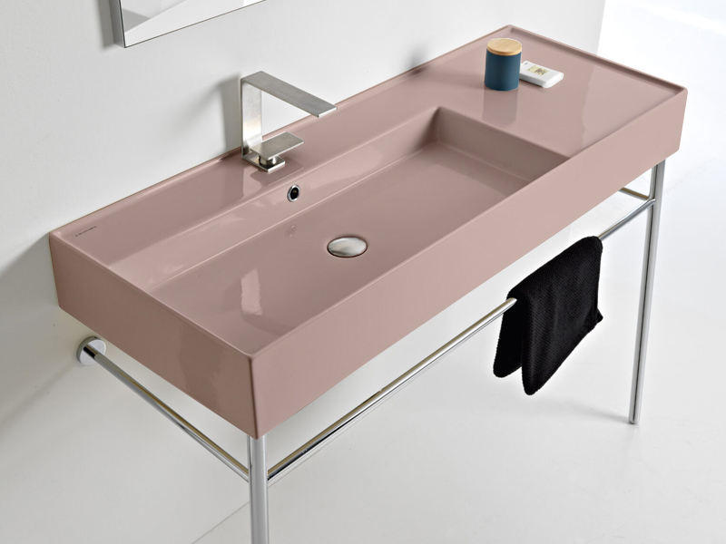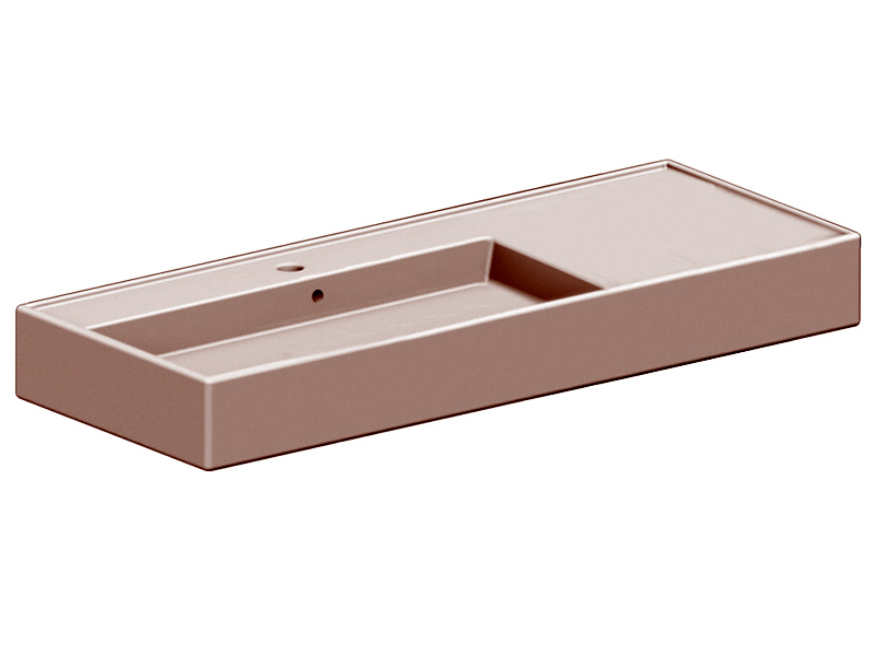 SCARABEO TEOREMA 2.0 5121 Раковина накладная или подвесная чаша слева, одно отверстие под смеситель, с сливом - переливом. Размеры: 121x46x14h см. Настенные крепления и перелив входят в комплект. Цвет Glossy Antique pink.