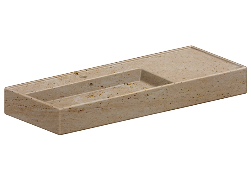 SCARABEO TEOREMA 2.0 5121 Раковина накладная или подвесная чаша слева, одно отверстие под смеситель, с сливом - переливом. Размеры: 121x46x14h см. Настенные крепления и перелив входят в комплект. Цвет Travertine.