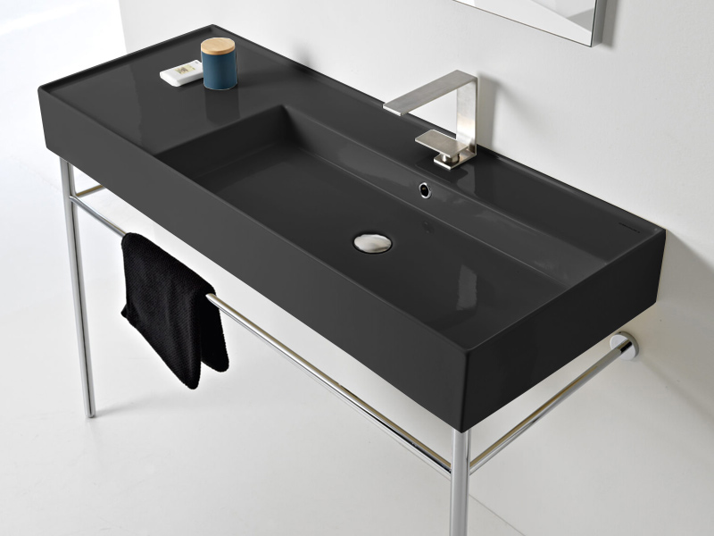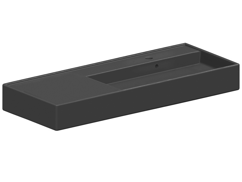 SCARABEO TEOREMA 2.0 5122 Раковина накладная или подвесная чаша справа, одно отверстие под смеситель, с сливом - переливом. Размеры: 121x46x14h см. Настенные крепления и перелив входят в комплект. Цвет Night.