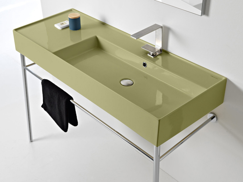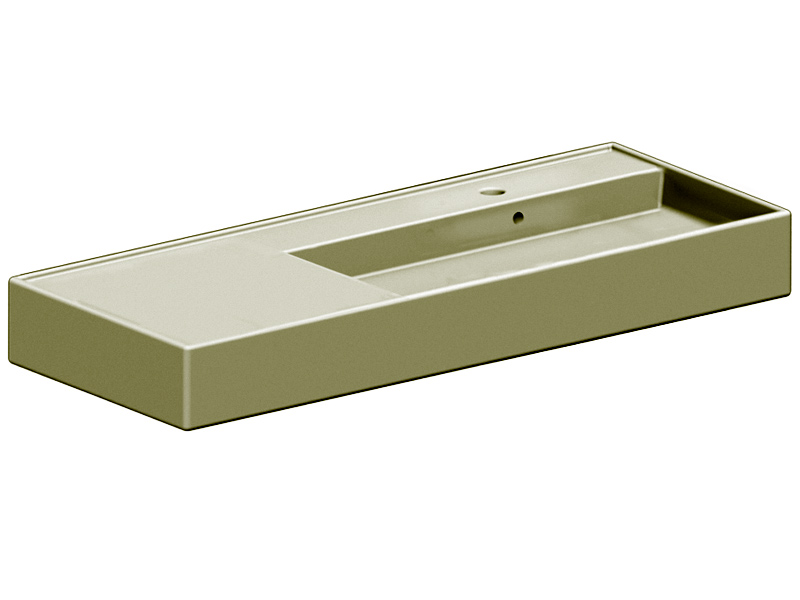 SCARABEO TEOREMA 2.0 5122 Раковина накладная или подвесная чаша справа, одно отверстие под смеситель, с сливом - переливом. Размеры: 121x46x14h см. Настенные крепления и перелив входят в комплект. Цвет Glossy lime.