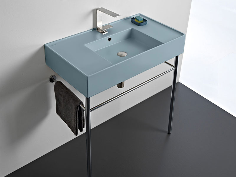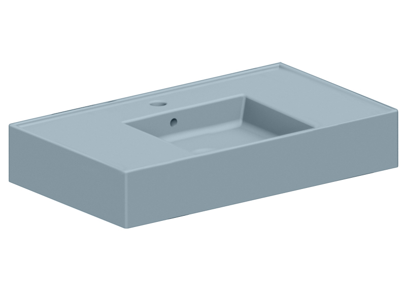 SCARABEO TEOREMA 2.0 DOUBLE SHELF 5123 Раковина накладная или подвесная чаша посередине, одно отверстие под смеситель, с сливом - переливом. Размеры: 81x44x14h см. Настенные крепления и перелив входят в комплект. Цвет Matt Air.