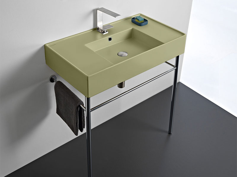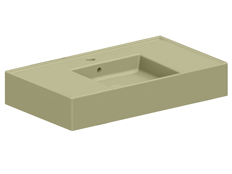 SCARABEO TEOREMA 2.0 DOUBLE SHELF 5123 Раковина накладная или подвесная чаша посередине, одно отверстие под смеситель, с сливом - переливом. Размеры: 81x44x14h см. Настенные крепления и перелив входят в комплект. Цвет Matt lime.