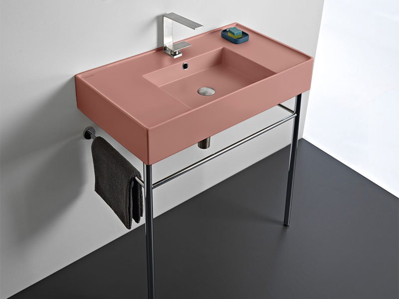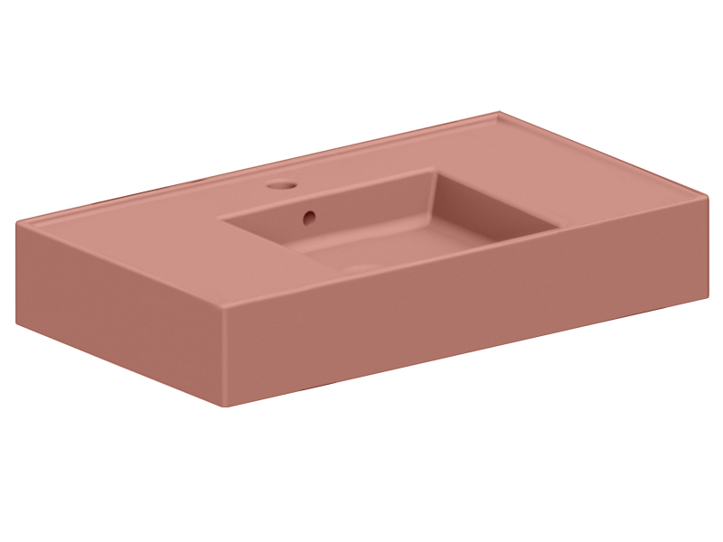 SCARABEO TEOREMA 2.0 DOUBLE SHELF 5123 Раковина накладная или подвесная чаша посередине, одно отверстие под смеситель, с сливом - переливом. Размеры: 81x44x14h см. Настенные крепления и перелив входят в комплект. Цвет Matt Peach.