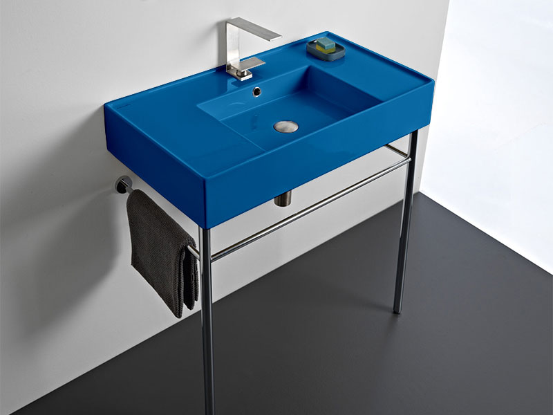 SCARABEO TEOREMA 2.0 DOUBLE SHELF 5123 Раковина накладная или подвесная чаша посередине, одно отверстие под смеситель, с сливом - переливом. Размеры: 81x44x14h см. Настенные крепления и перелив входят в комплект. Цвет Glossy Ocean .