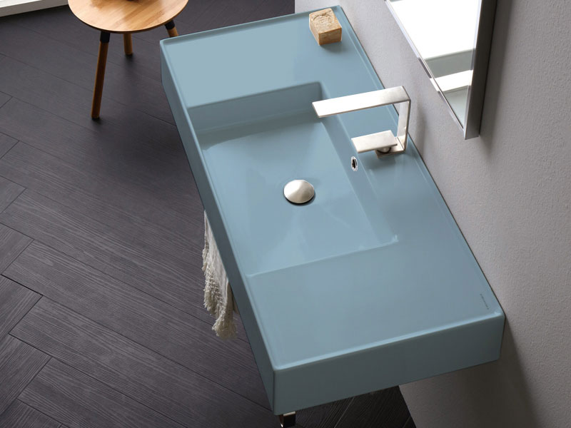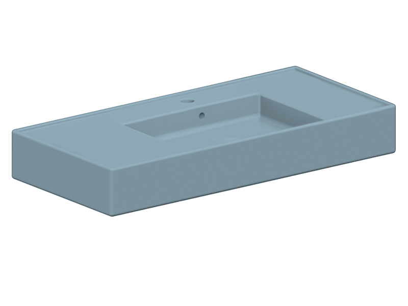 SCARABEO TEOREMA 2.0 DOUBLE SHELF 5124 Раковина накладная или подвесная чаша посередине, одно отверстие под смеситель, с сливом - переливом. Размеры: 101x46x14h см. Настенные крепления входят в комплект. Цвет Matt Air.