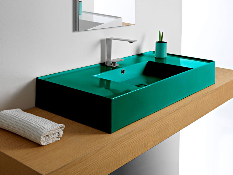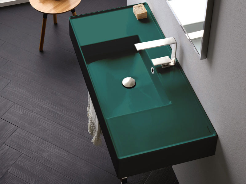 SCARABEO TEOREMA 2.0 DOUBLE SHELF 5124 Раковина накладная или подвесная чаша посередине, одно отверстие под смеситель, с сливом - переливом. Настенные крепления входят и перелив в комплект. Размеры: 101x46x14h см. Цвет Glossy Musk.