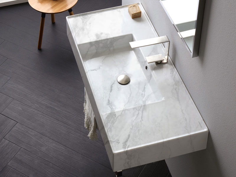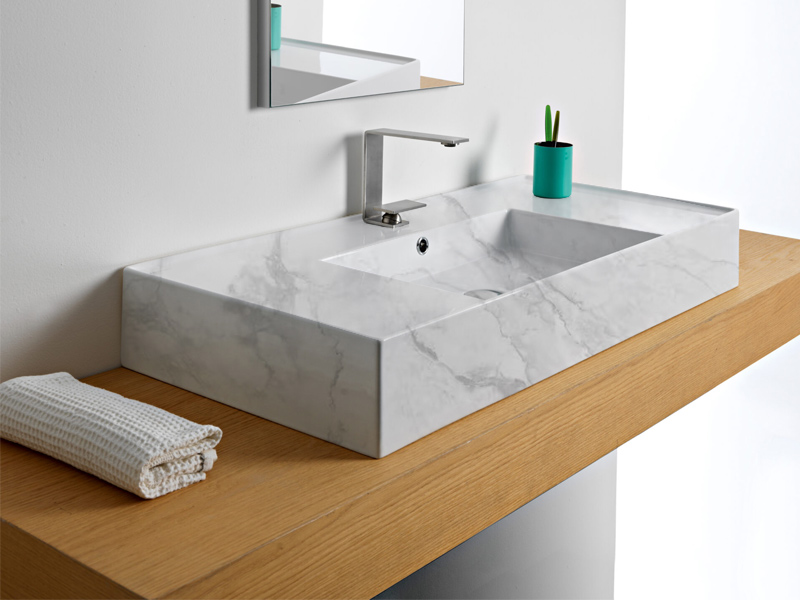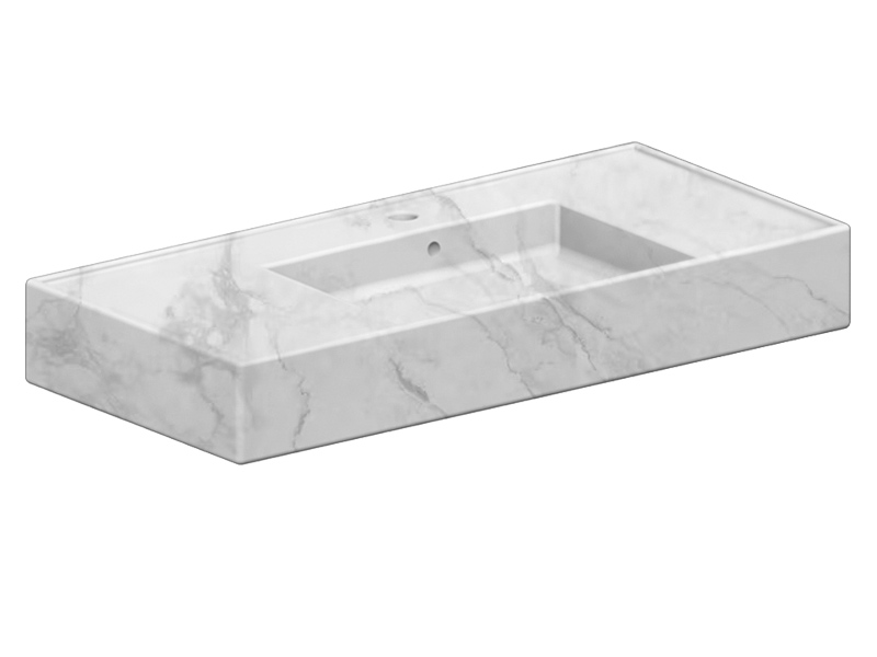 SCARABEO TEOREMA 2.0 DOUBLE SHELF 5124 Раковина накладная или подвесная чаша посередине, одно отверстие под смеситель, с сливом - переливом. Настенные крепления входят и перелив в комплект. Размеры: 101x46x14h см. Цвет Marble White.