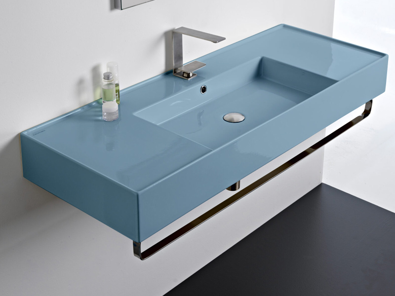 SCARABEO TEOREMA 2.0 DOUBLE SHELF 5125 Раковина накладная или подвесная чаша посередине, одно отверстие под смеситель, с сливом - переливом. Размеры: 121x46x14h см. Настенные крепления и перелив входят в комплект. Цвет Glossy Air.