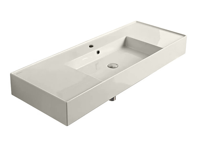SCARABEO TEOREMA 2.0 DOUBLE SHELF 5125 Раковина накладная или подвесная чаша посередине, одно отверстие под смеситель, с сливом - переливом. Размеры: 121x46x14h см. Настенные крепления входят в комплект. Цвет Pearl.
