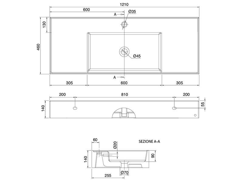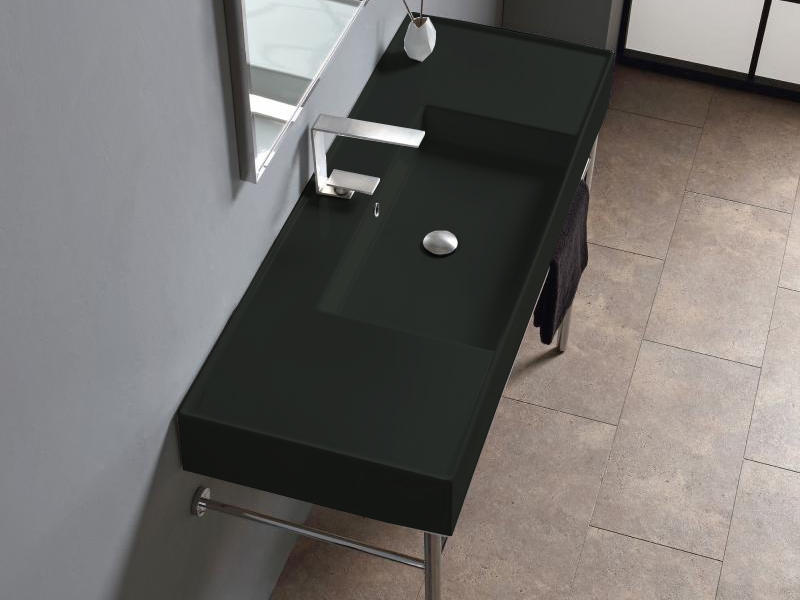 SCARABEO TEOREMA 2.0 DOUBLE SHELF 5125 Раковина накладная или подвесная чаша посередине, одно отверстие под смеситель, с сливом - переливом. Размеры: 121x46x14h см. Настенные крепления входят в комплект. Цвет ARDESIA.