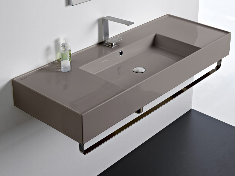 SCARABEO TEOREMA 2.0 DOUBLE SHELF 5125 Раковина накладная или подвесная чаша посередине, одно отверстие под смеситель, с сливом - переливом. Размеры: 121x46x14h см. Настенные крепления и перелив входят в комплект. Цвет Glossy Sand.