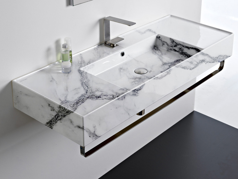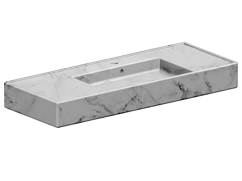 SCARABEO TEOREMA 2.0 DOUBLE SHELF 5125 Раковина накладная или подвесная чаша посередине, одно отверстие под смеситель, с сливом - переливом. Размеры: 121x46x14h см. Настенные крепления и перелив входят в комплект. Цвет Marble White.