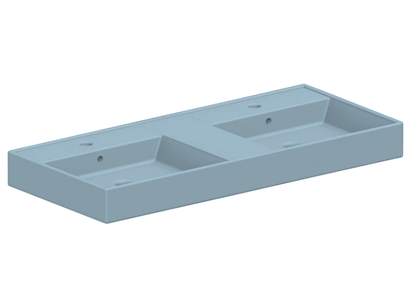 SCARABEO TEOREMA 2.0 5142 Раковина накладная или подвесная двойная. Две чаши, два отверстия под смеситель, с сливом-переливом. Размеры: 101x46x14h см. Настенные крепления и перелив входят в комплект. Цвет Glossy Air .