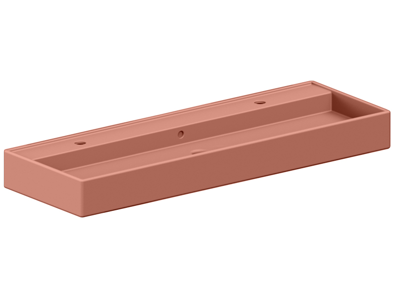 SCARABEO TEOREMA 2.0 5158R-140B Раковина накладная или подвесная с двумя отверстиями под смеситель, с сливом-переливом. Настенные крепления и перелив входят в комплект. Размеры: 140x46x14,5h см. Цвет Matt Peach.