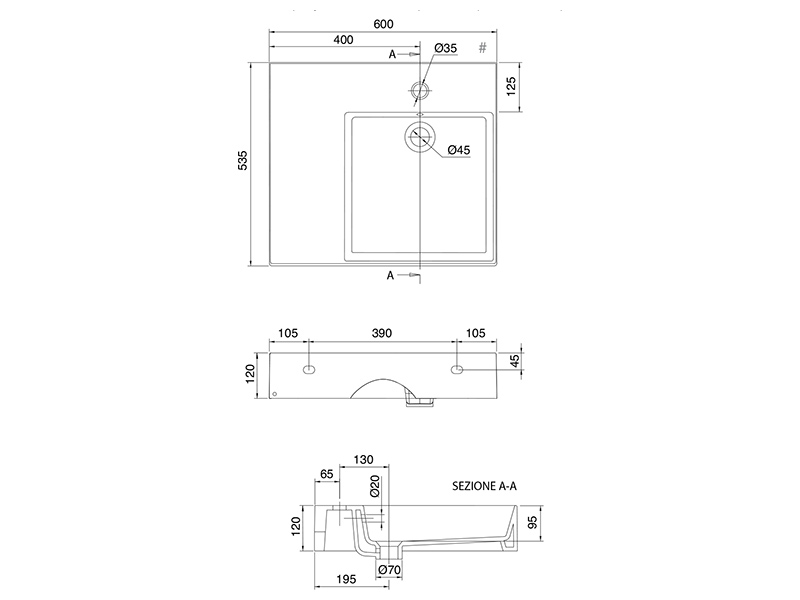 | Отверстие под смеситель | Одно |